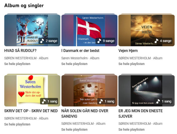 Jeg hedder Søren Westerholm og har sunget og spillet fra midten af 60’erne hvor jeg sammen med 4 kammerater startede mit eget pigtrådsband. Senere blev det folkemusikken, der kom i centrum - men det var først i 2005, at jeg for alvor begyndte at skrive egne sange og viser. Jeg skriver primært på dansk og har altid ønsket at kunne gøre noget for at fremme den folkelige sangskrivning. De fleste af mine sange er udgivet på CD og til til streaming / download og en del af dem kan også ses og høres på YouTube under DK4´s DanskTop.